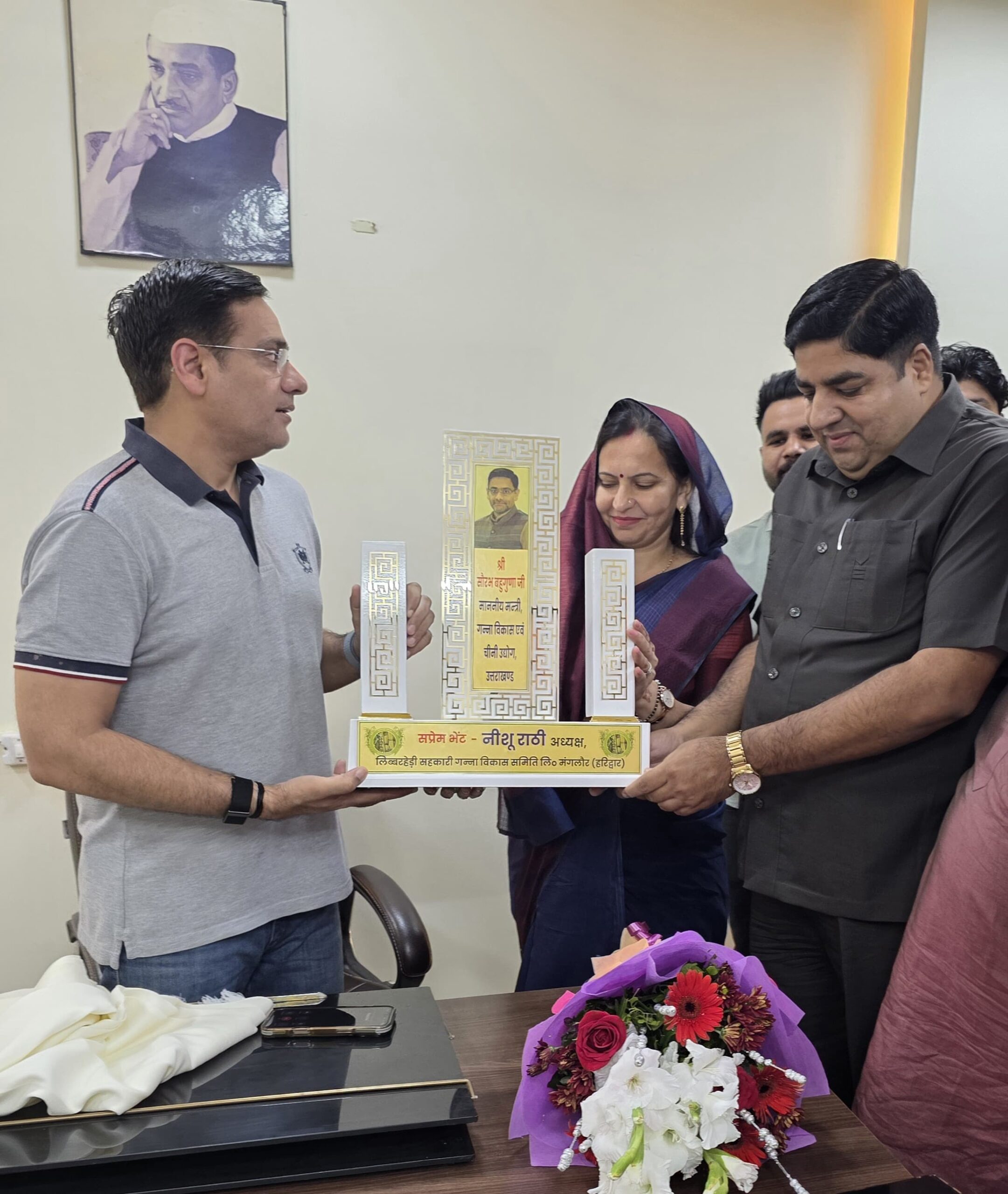 नवनिर्वाचित अध्यक्ष श्रीमती नीशू राठी के नेतृत्व में उपाध्यक्ष एवं संचालकगणों ने गन्ना मंत्री श्री सौरभ बहुगुणा जी से शिष्टाचार भेंट कर गन्ना सम्बन्धी विभिन्न विषयों पर चर्चा की! July 31, 2025 / By admin / Leave a Comment