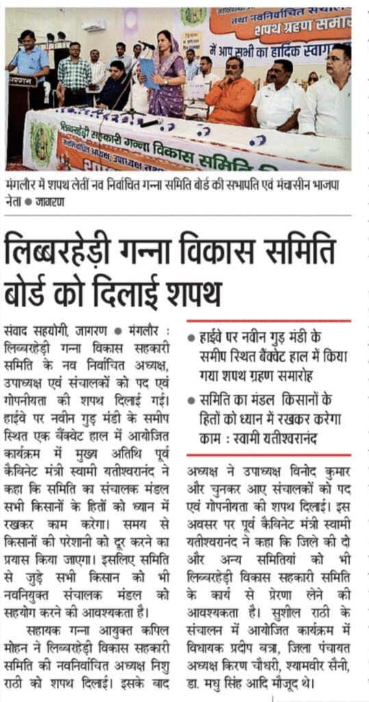 लिब्बरहेड़ी गन्ना विकास समिति बोर्ड को दिलाई शपथ Leave a Comment / media / admin लिब्बरहेड़ी गन्ना विकास समिति बोर्ड को दिलाई शपथ Read More »
