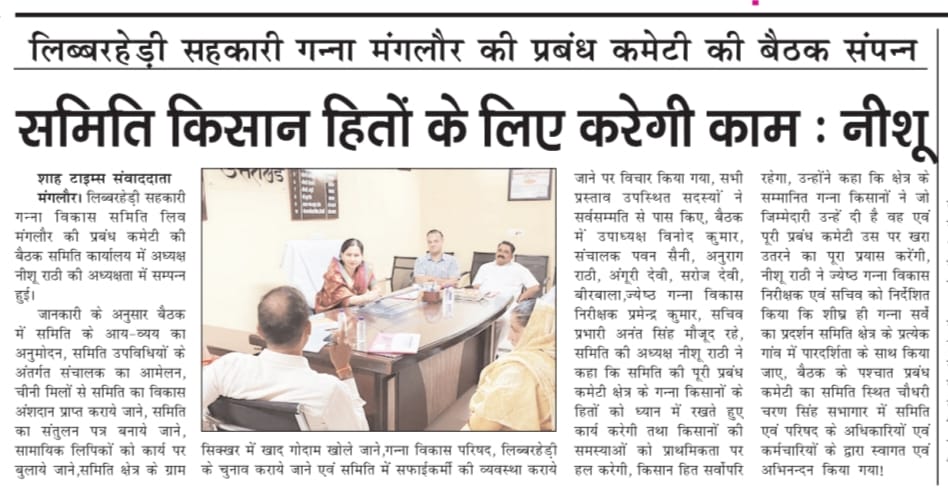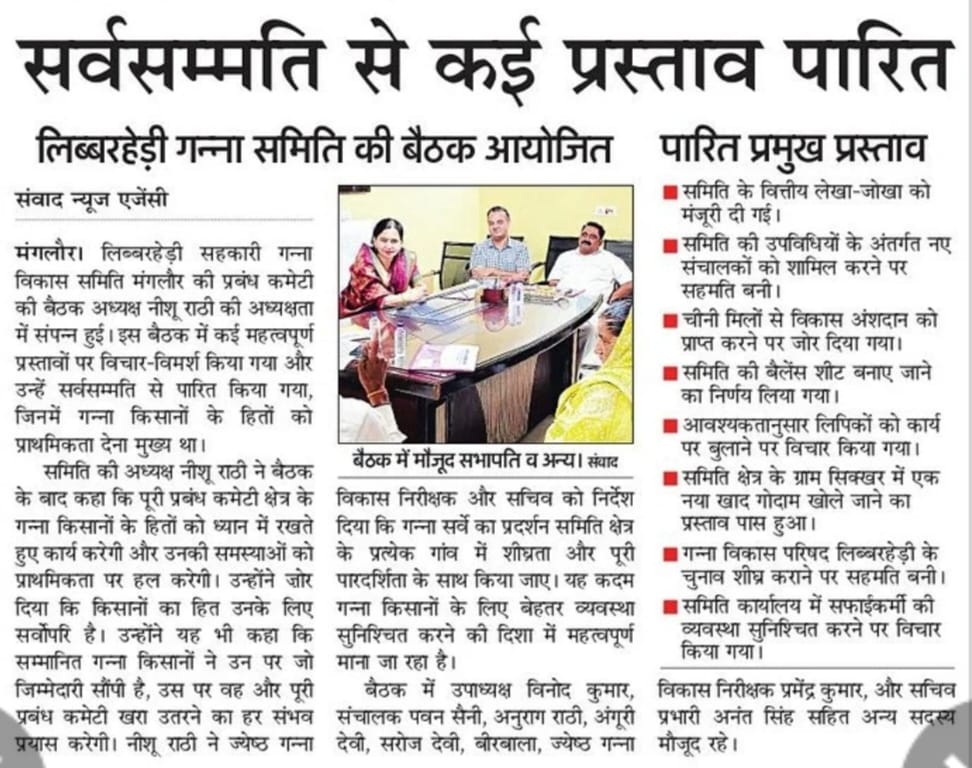 लिब्बरहेड़ी गन्ना समिति की बैठक संपन्न Leave a Comment / media / admin लिब्बरहेड़ी गन्ना समिति की बैठक संपन्न Read More »