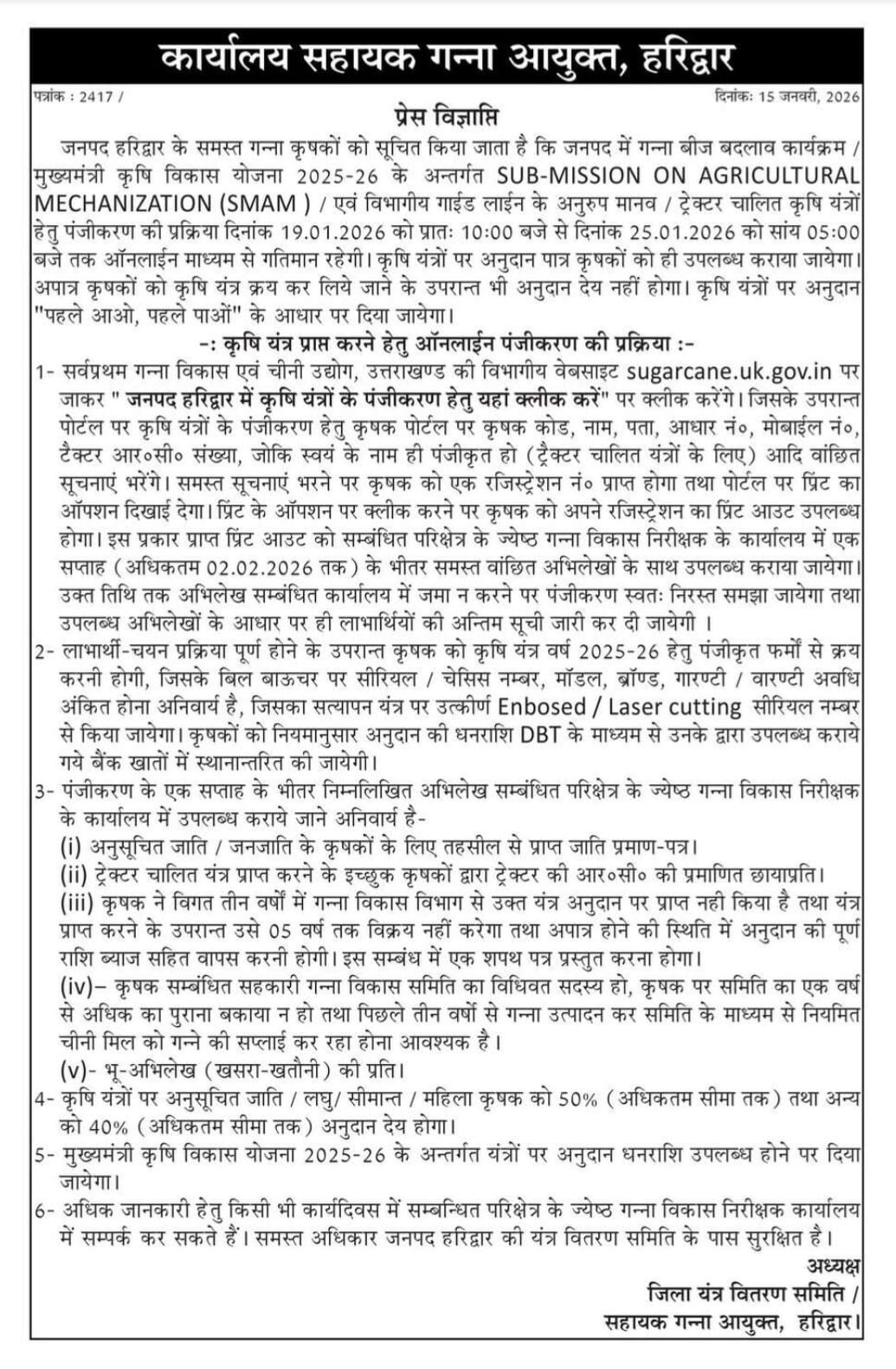 Notice Board सूचनाएं आप सभी को नव वर्ष 2022 की हार्दिक शुभकामनाएँ! – 1 Jan 2022 10 दिनों का गन्ना भुगतान – 15 Dec 2021 समिति के सभी गोदामों पर डीoएoपीo (DAP) पहुंच चुकी – 14 Dec 2021 उत्तम चीनी मिल, लिब्बरहेड़ी – गन्ना भुगतान – 6 Dec 2021 Load More जरुरी सूचनाकृपया इंक्वायरी हेतु यह ऐप डाउनलोड करें, इसमें पासवर्ड, बैंक खाते के अंतिम चार अंक दर्ज करें, कैलेंडर का कार्य गतिमान है, कुछ ही दिनों बाद कैलेंडर भी दिखाई देगा! नीचे दिए गए लिंक पर क्लिक कर के अभी डाउनलोड करें Download